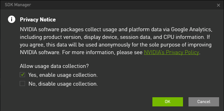 - The Manage NVIDIA SDKs screen will show you what's been installed on your system, and you can select whether to repair a broken installation, update an existing SDK, or uninstall an SDK.
