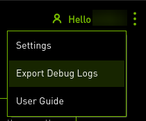 Alternatively, you can choose Export Debug Logs from the drop-down menu in the top-right corner.