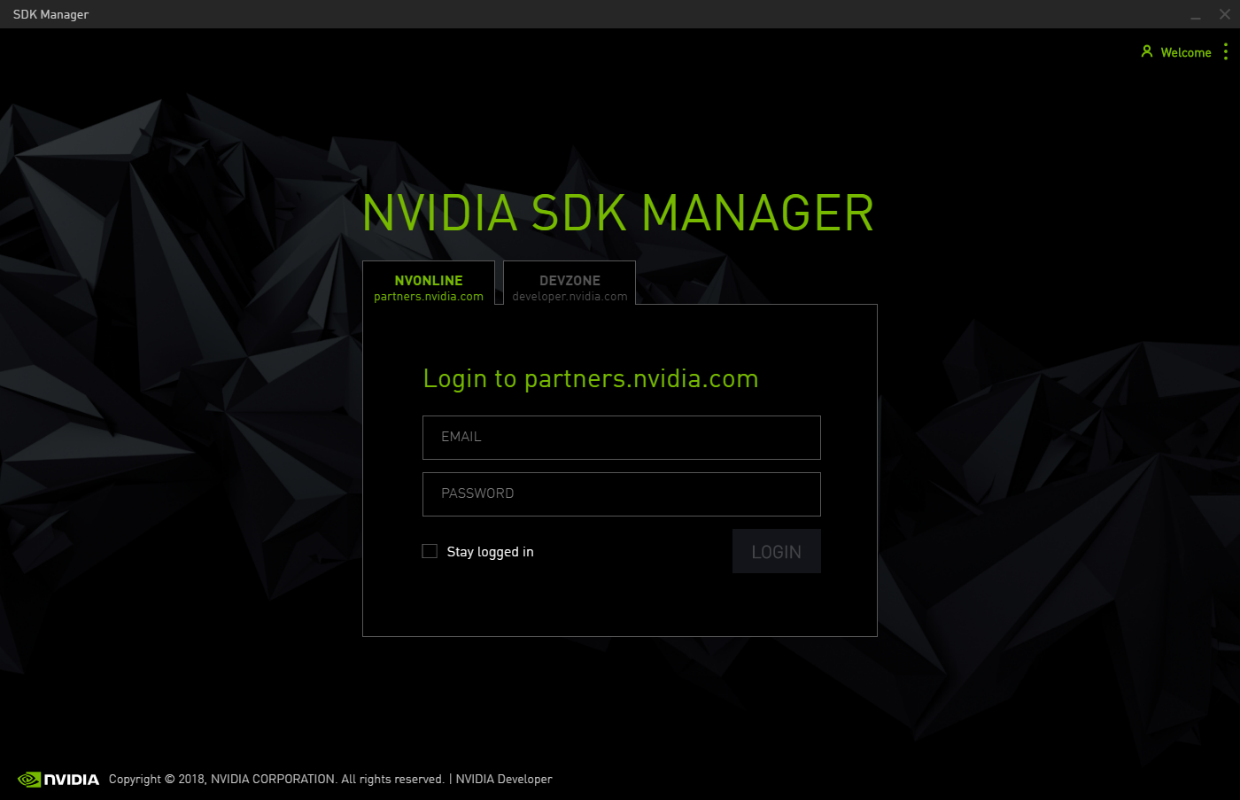 - SDK Manager works with two NVIDIA systems, NVOnline and DevZone. Navigate to the appropriate site for your user account, and log in.