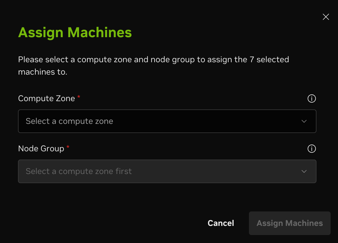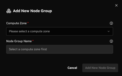 Node groups and Compute Zone groups can be created to group and manage a larger number of nodes. Node groups are similar type machines (i.e., similar GPUs, CPUs, hardware manufacturer, etc.) while Compute Zone groups are machines in similar locations (i.e., Data Centers, States, Countries, etc.). Nodes can only reside in a single Node Group and a single Compute Zone. Use tags for customized groups.