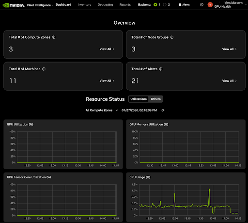 Fleet Intelligence is designed to provide organizations with robust inventory, integrity, and health monitoring capabilities for their NVIDIA GPU fleet. By installing a host-based agent that communicates with NVIDIA’s Fleet Intelligence service, you have access to a near-real-time visualization of all hosts with GPUs enrolled.