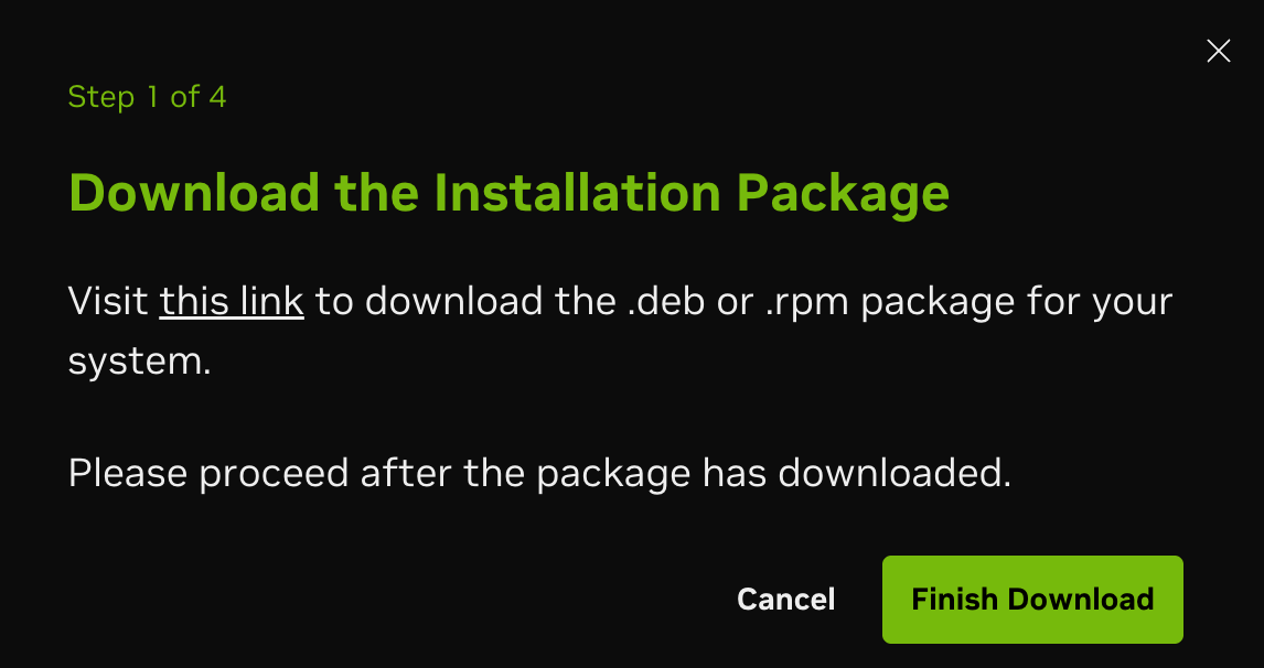 The wizard will walk you through the steps to download the .deb or .rpm package from the Fleet Intelligence Agent GitHub page.