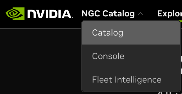 You may land on the NGC Catalog after logging in (see the label in the upper-left corner). If so, click NGC Catalog and select Fleet Intelligence.