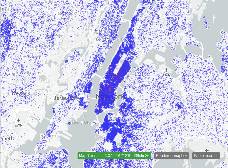 Notice that the area with the most overlapping points is in the upper east side of Manhattan.