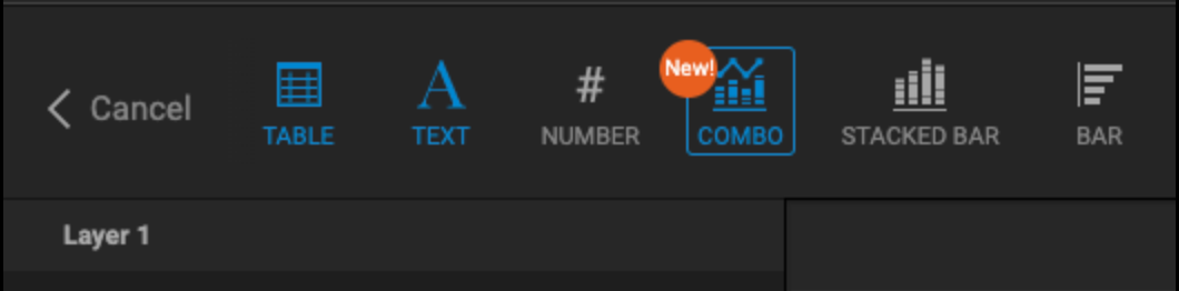 The Combo chart combines the functionality of a number of existing chart types and can display multiple data series in a variety of configurations. This flexibility makes it easier to create, change, and manipulate charts in a variety of formats without having to create a number of different chart types on your dashboard.