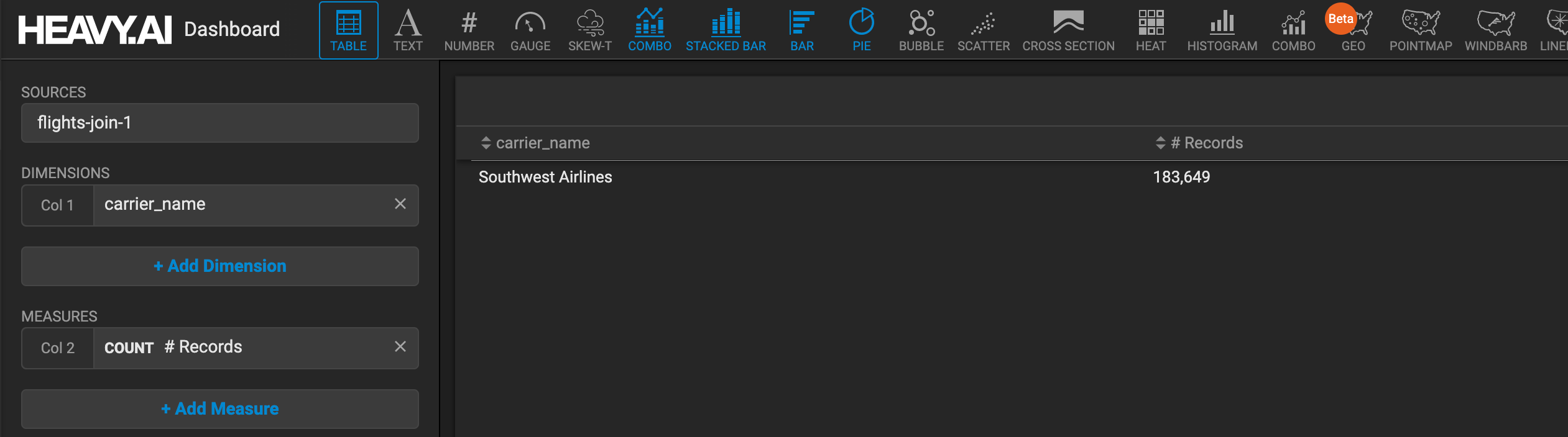 In HEAVY.AI Release 7.0.0, Joins in Heavy Immerse is beta functionality.