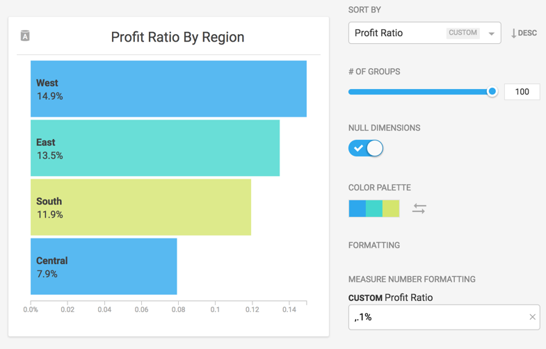 To simplify the percentage format to one decimal place, apply ,.1% to the Custom Profit Ratio: