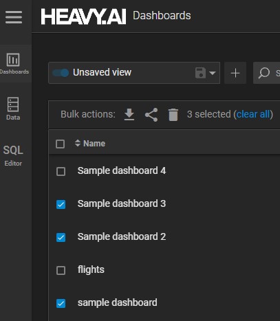 - Perform bulk actions on selected dashboards.