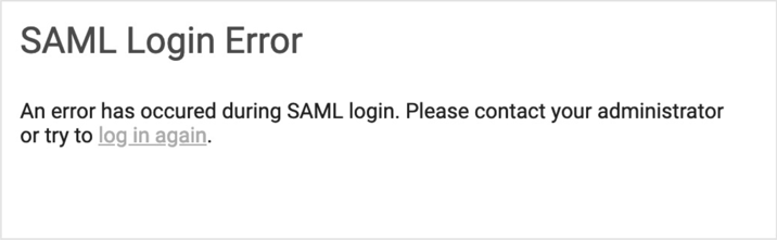 If authentication fails, you see this error message when you attempt to log in through Okta:
