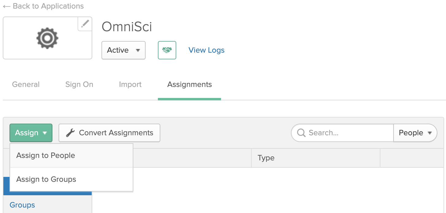 1) On the Okta website, on the Assignments tab, click Assign > Assign to People.