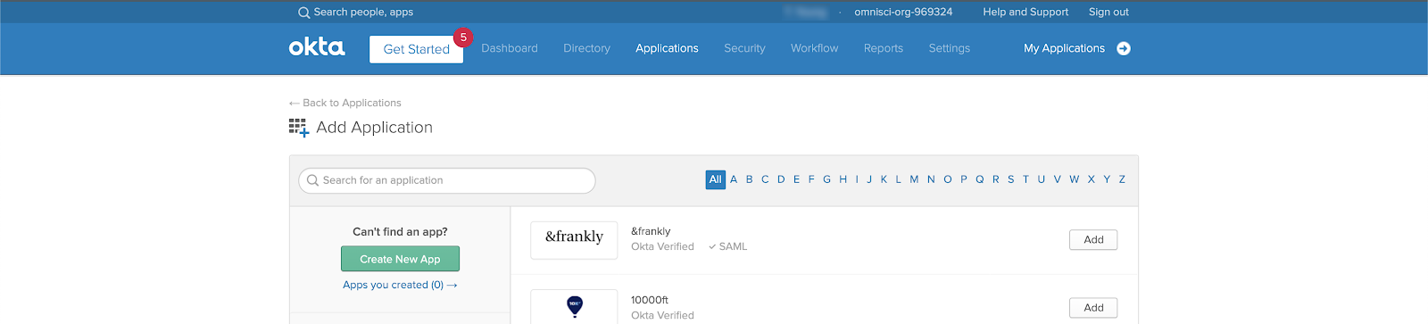 Begin by adding your SAML application in Okta. If you do not have an Okta account, you can sign up on the Okta web page.