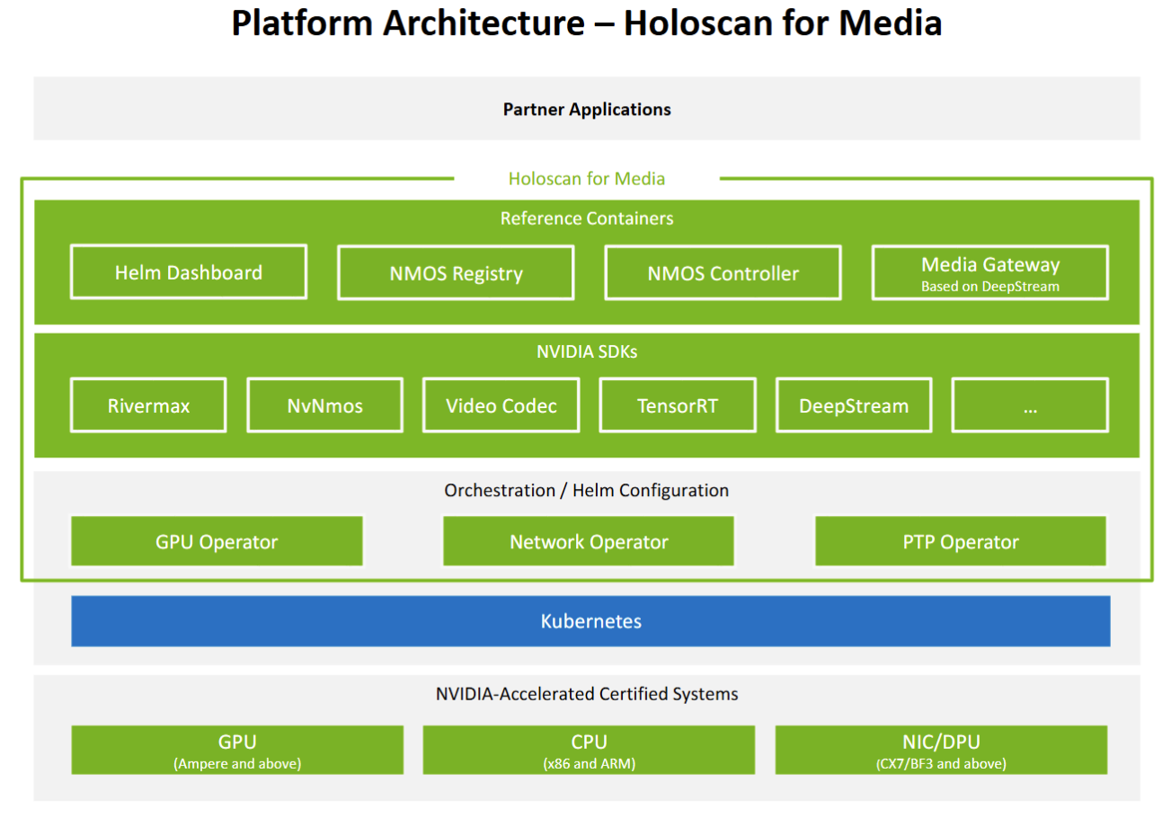 Holoscan for Media’s goal is to allow software developers to provide their solutions as containerized applications that could be deployed on any hardware architecture, from on-premises servers, through cloud and edge computers.