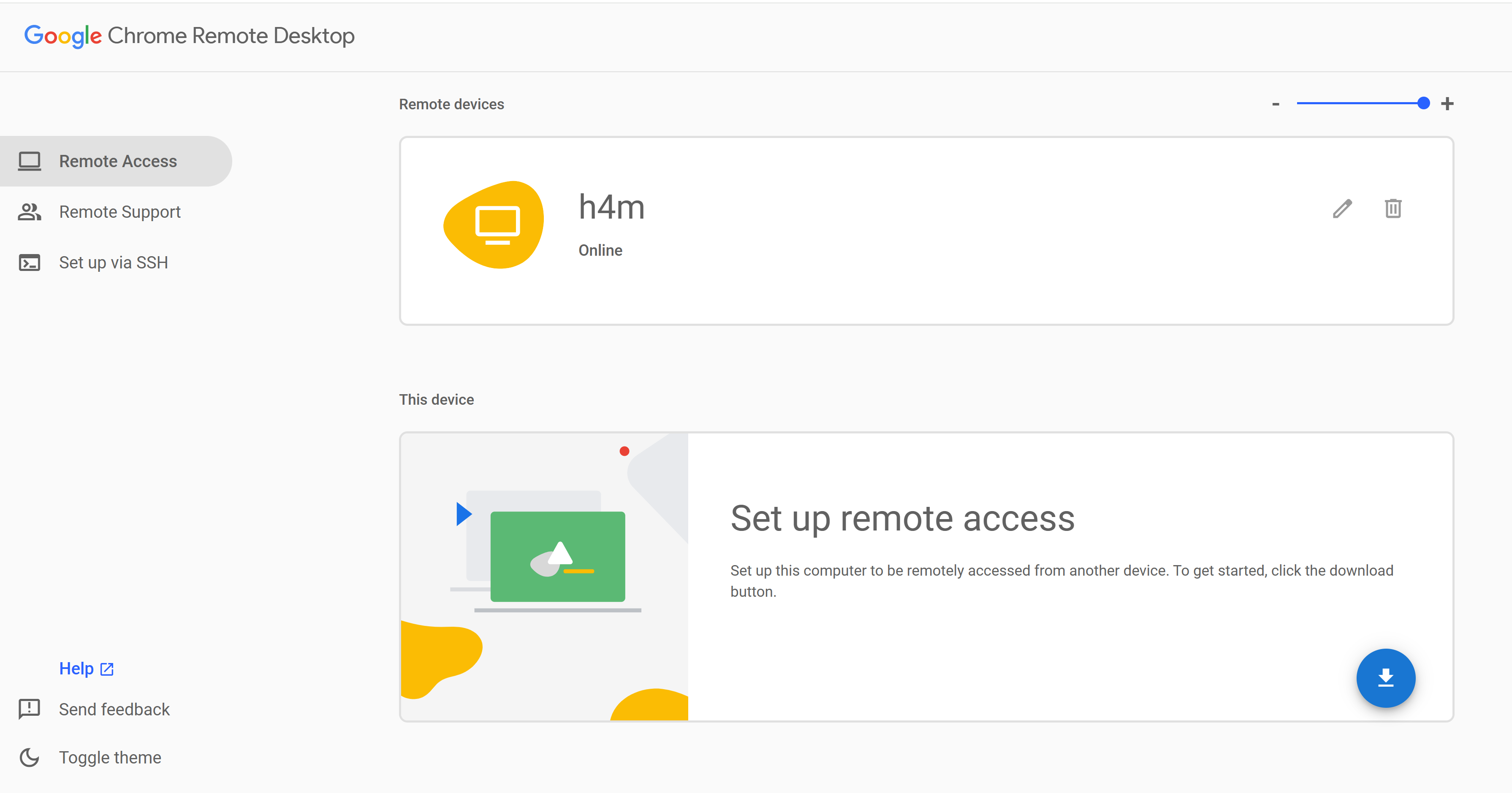 You’ll see your remote computer listed based on the hostname you specified for the chrome-remote-desktop (default: myvirtualdesktop).