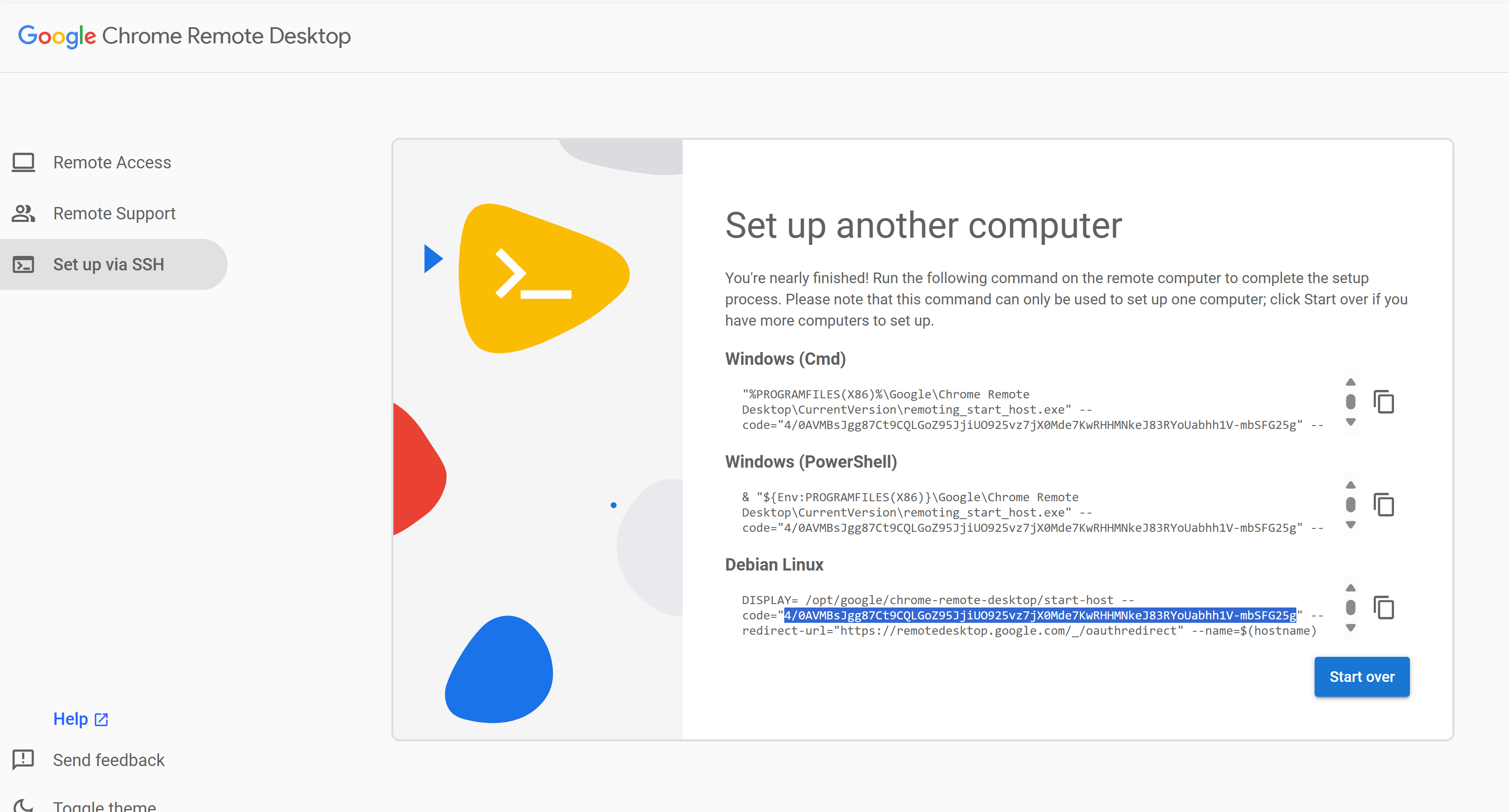 Get Chrome Remote Desktop Authorization Code.
