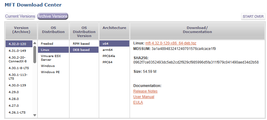Install Mellanox Firmware Tool (MFT) version 4.32.0.120 selecting Debian based OS distribution as shown in image below