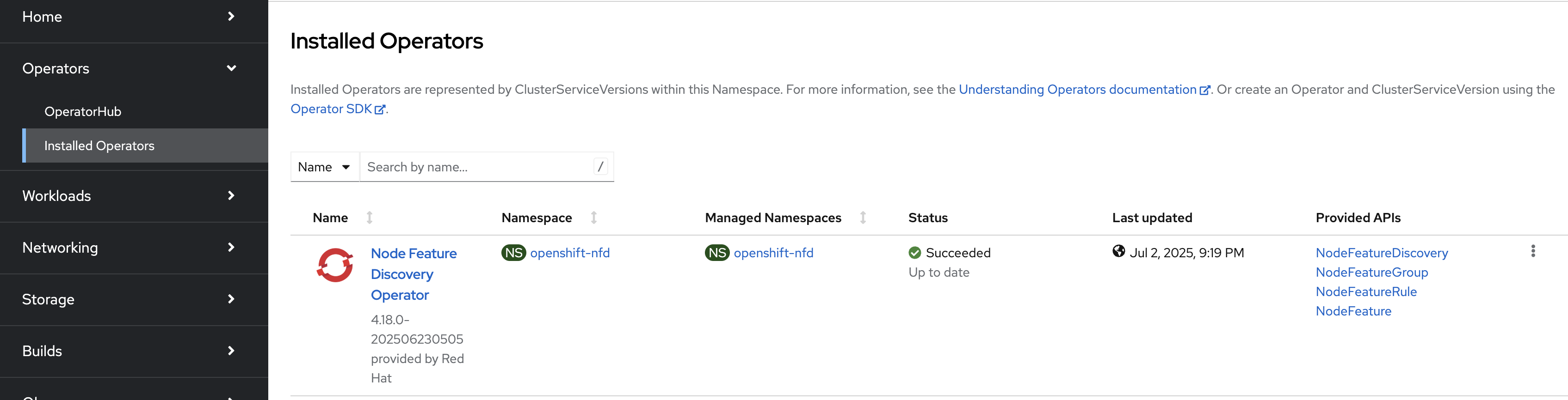 Installing Node Feature Discovery Operator#