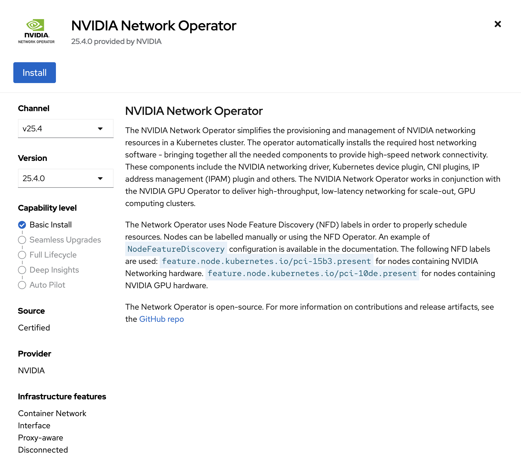 Select NVIDIA Network Operator.