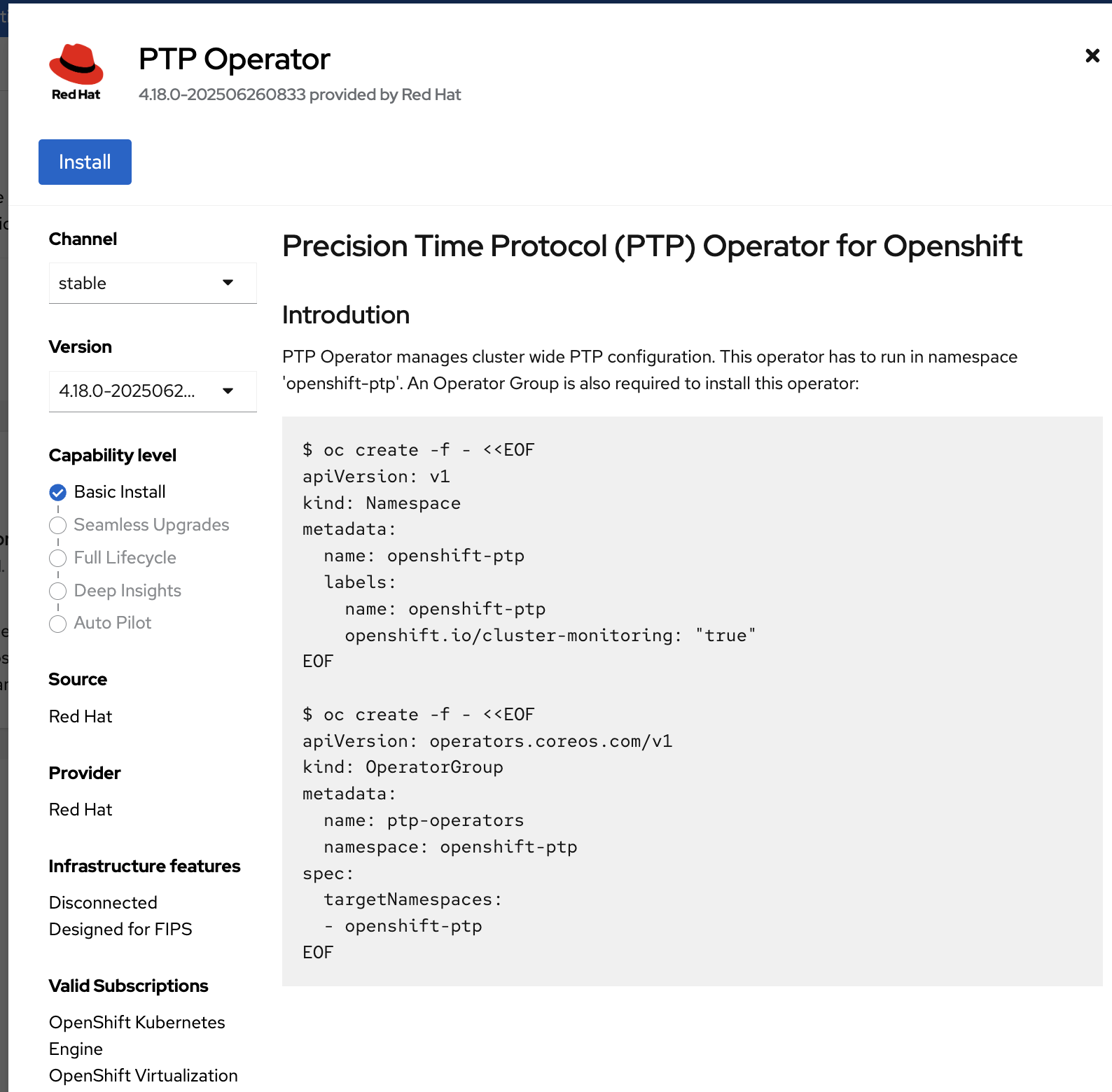 Select PTP Operator provided by Red Hat.
