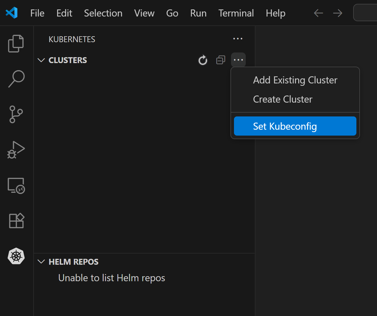 Open VS Code on the machine and navigate to the Kubernetes extension.