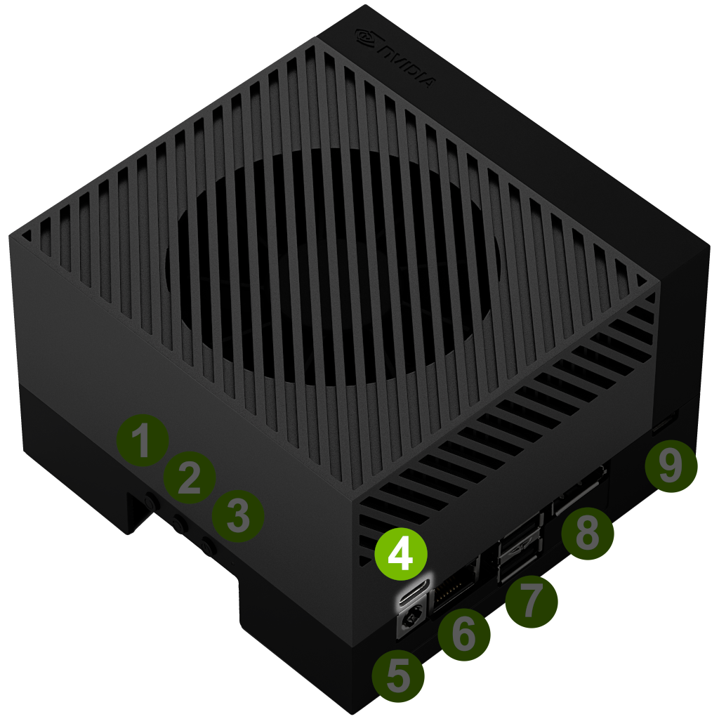 Then connect the included power supply into the USB Type-C port above the DC jack ( 4