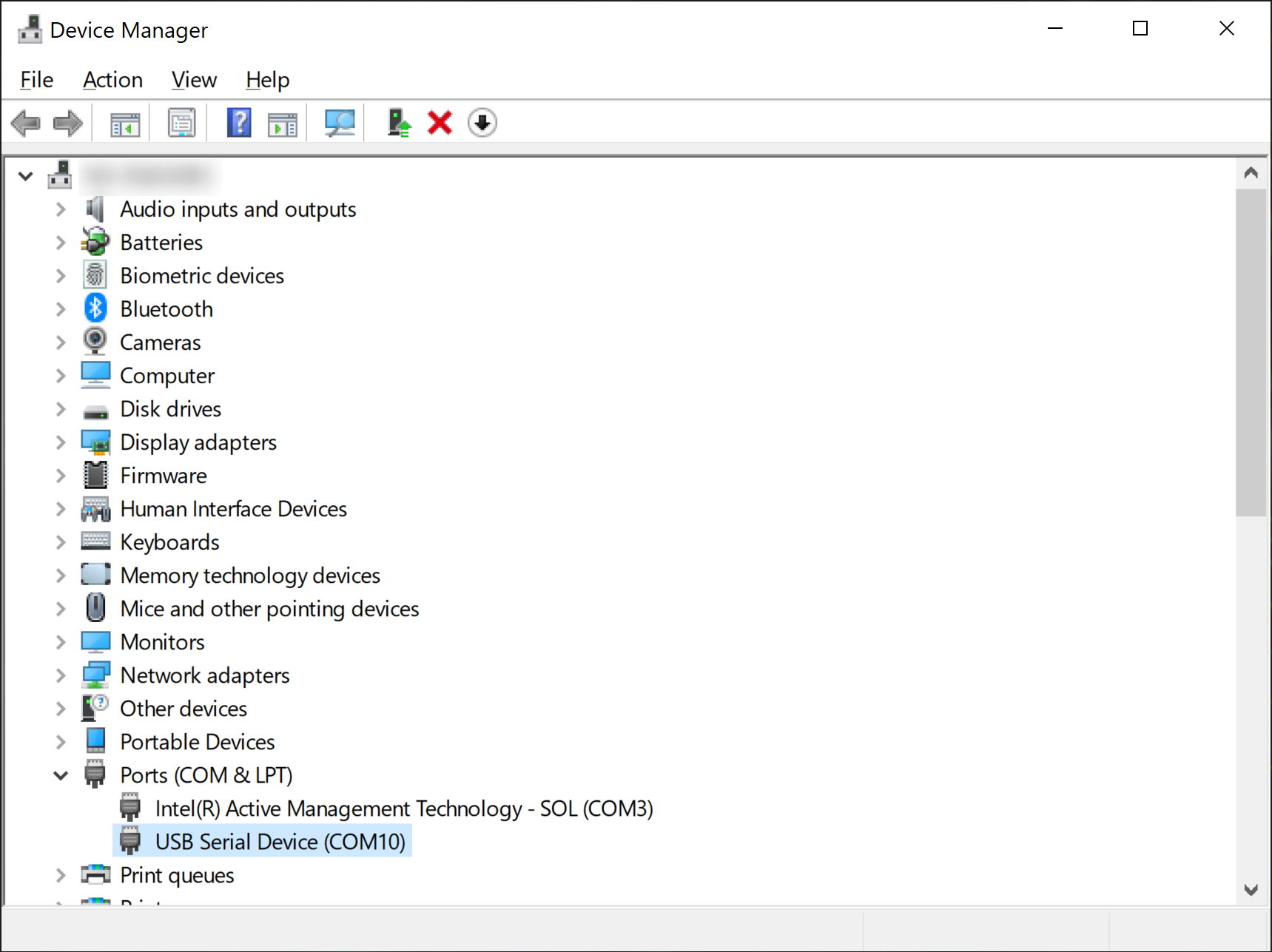 Ports (COM & LPT)to find aUSB Serial Device(in this caseCOM10).