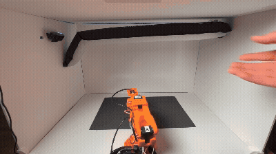Matches the digital twin The Isaac Lab scene replicates this enclosure’s dimensions, color, camera placements, and object geometry. Matching the real bench to that design shrinks the visual domain gap—one of the main sources of sim-to-real failure.