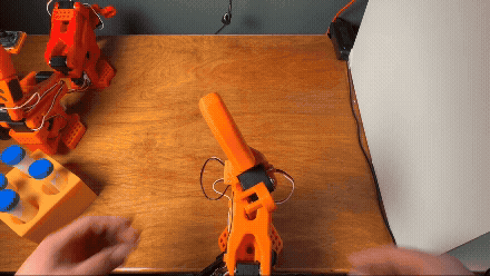 Pay particular attention to the wrist axis here. This axis uses almost the entire motor rotation, so if it’s not properly centered, you may encounter encoder overflow / underflow. Note how the gripper handle is oriented.