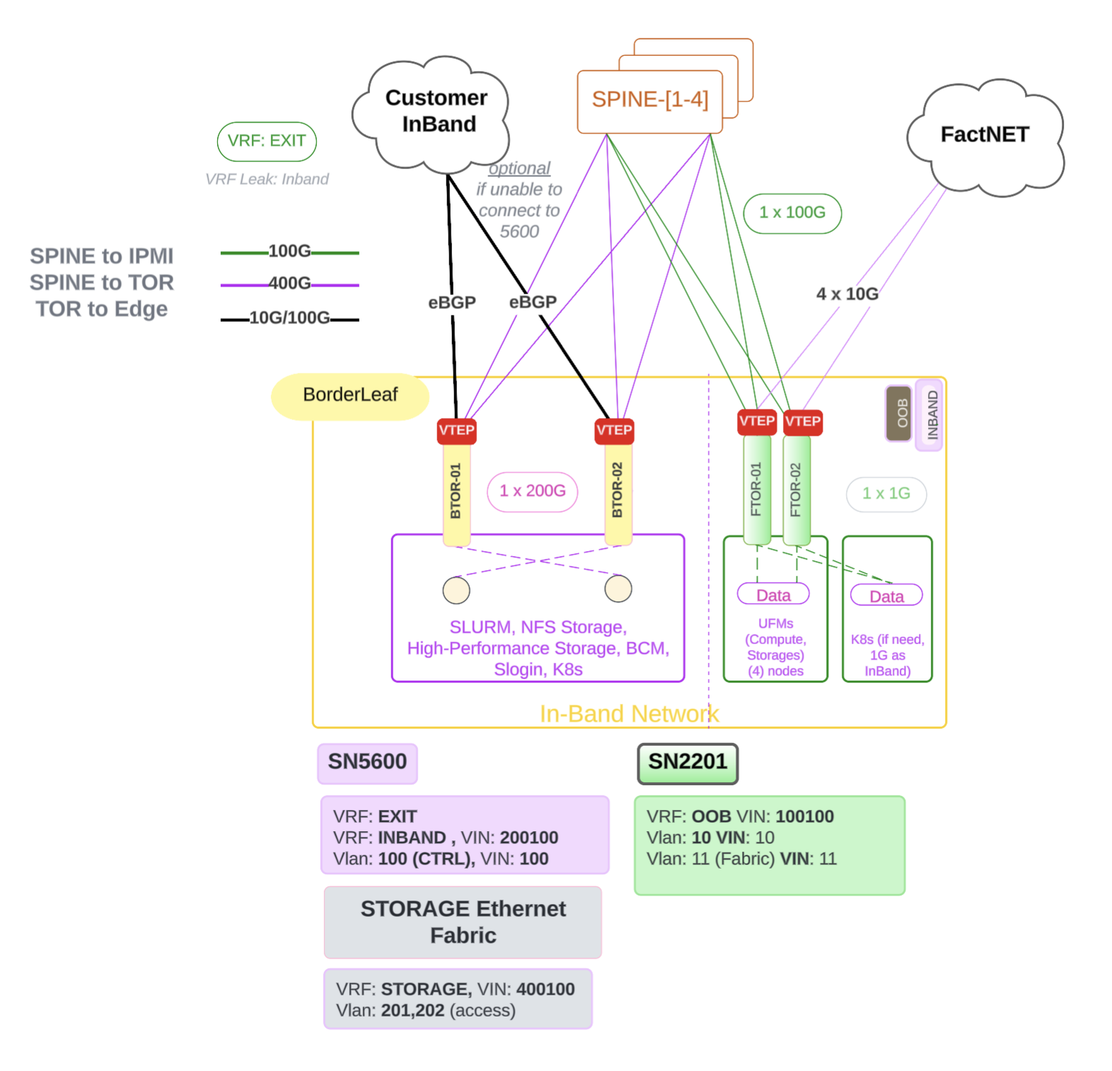 OOB: control (v10 /24), PDU/PWR/IBSW (v1[1-16] /24), in-rack groups (v111-112 /23, group by 4 racks).