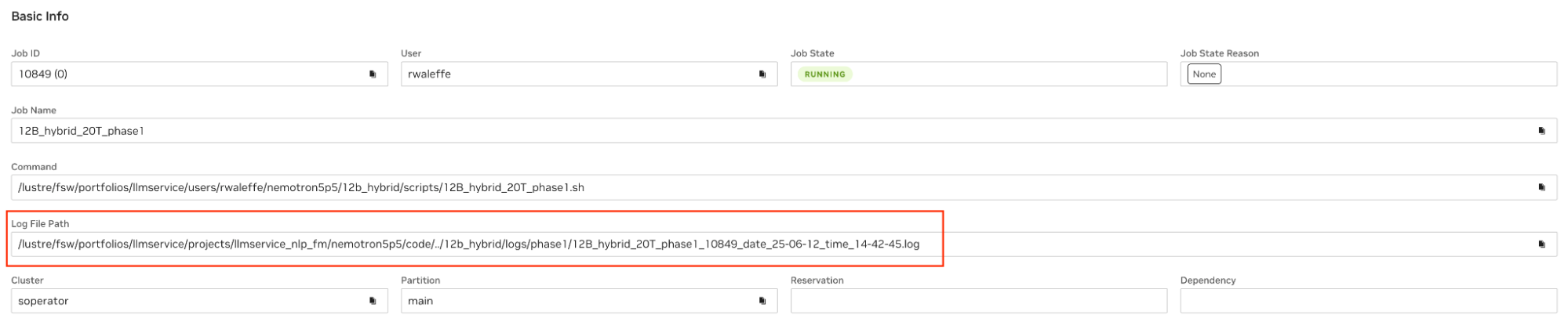 To verify this, the simplest way is to check if the Log File Path field on Cockpit is empty after the job starts running. Note that if the job is still pending, it is expected for this field to be empty because oftentimes the log files are created as part of the SBATCH script and are available only after the job is in a running state.