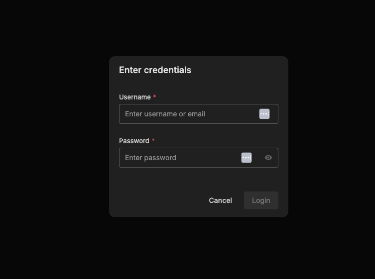 Once you click the login button, the authentication page appears where you can enter credentials.