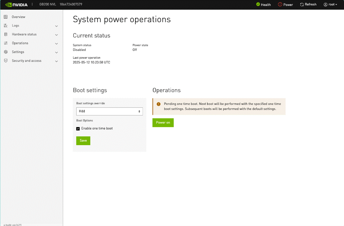[a03-p1-head-01->device[a06-p1-dgx-02-c18]->interfaces]% .. [a03-p1-head-01->device[a06-p1-dgx-02-c18]% bmcsettings [a03-p1-head-01->device[a06-p1-dgx-02-c18]->bmcsettings]% get username ; get password admin <your-device-bmc-password>