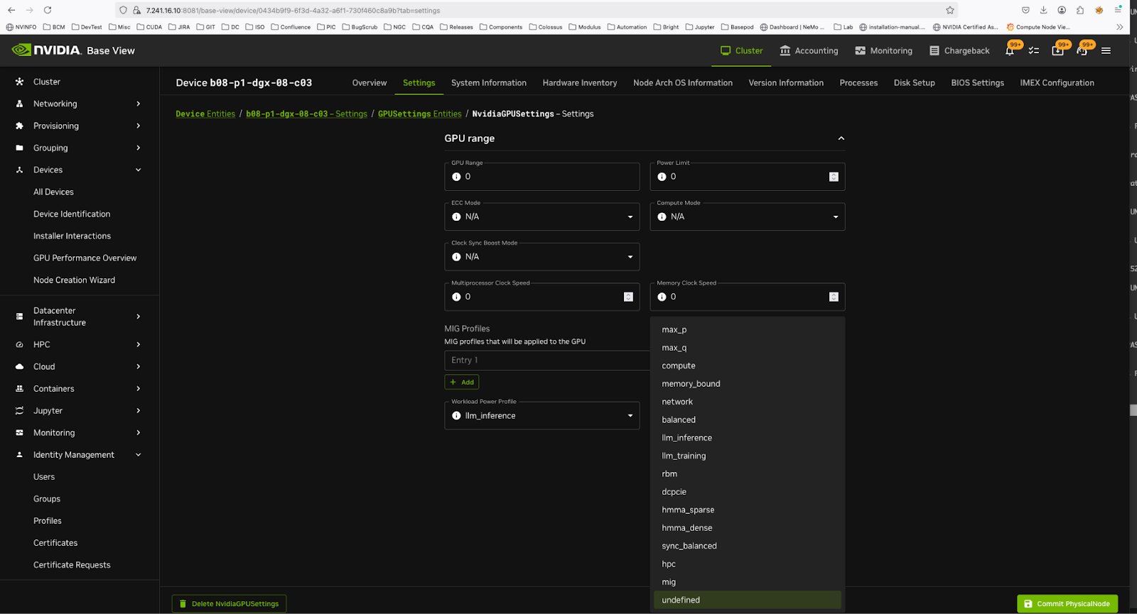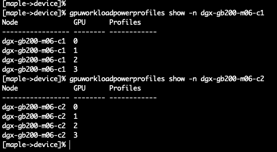 [maple->device]% gpuworkloadpowerprofiles show -n dgx-gb200-m06-c1