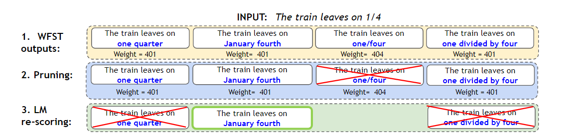 The context-aware version [TEXTPROCESSING-NORM1] is a shallow fusion of non-deterministic WFST and pretrained masked language model.