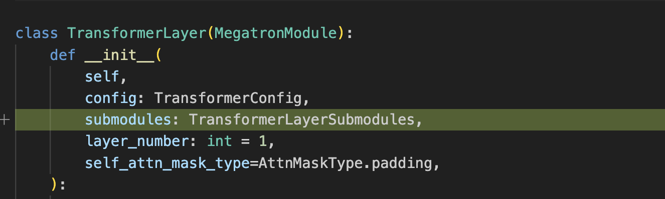 The spec system introduces a new approach to module initialization. Here is a before-and-after comparison of self attention initialization (megatron/core/transformer/transformer_layer.py) as example: