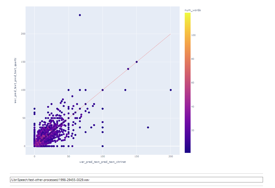 visual comparison of utterances by their WER/CER