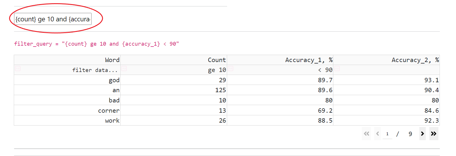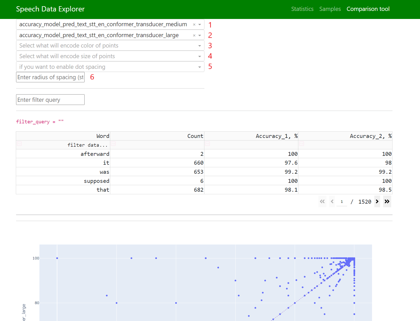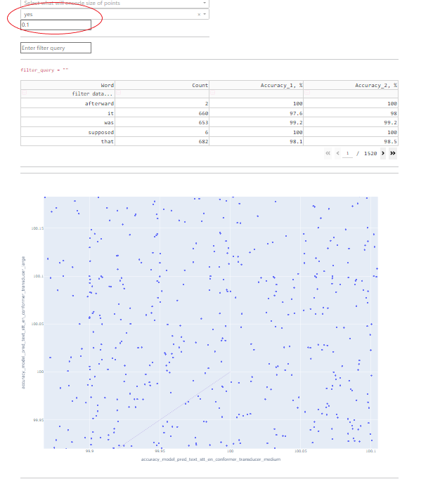 The Comparison Tool (CT) allows to compare predictions of different ASR models at word accuracy and utterance level.