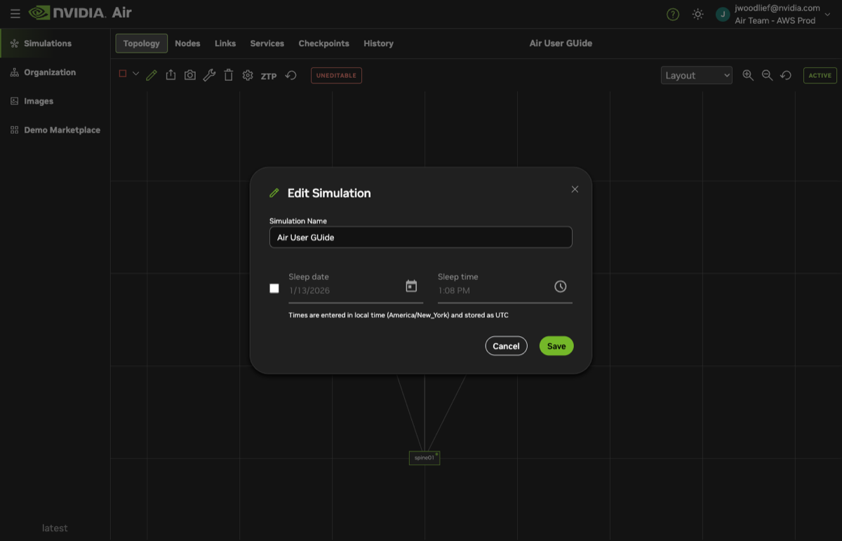 - Sleep date is when the simulation goes into sleep mode automatically; Air saves the state of the simulation and stores it to free up account resources.