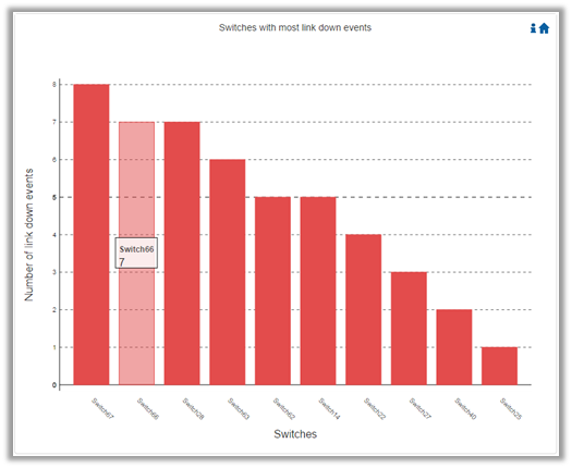 Switches with Most Link Down Events displays in a graphical view the list of the switches with the most link down events during the last 24 hours.
