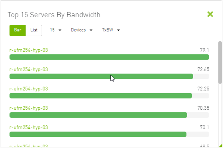 Top N Congested Servers/Switches by Bandwidth—Bar View