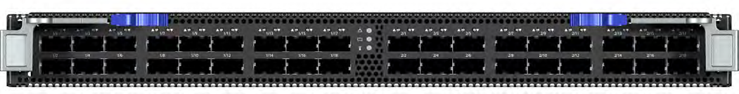 The connector side of the switch has 18 leaf modules and each leaf module has 36 QSFP28 ports. The ports on each leaf module are placed in two rows, 18 ports to a row. The ports are labeled as shown in the figure below. The bottom row ports are flipped from the top row as shown.