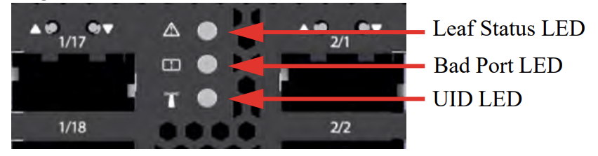 Each leaf module is connected by links to each spine module. Each spine has the following LEDs.