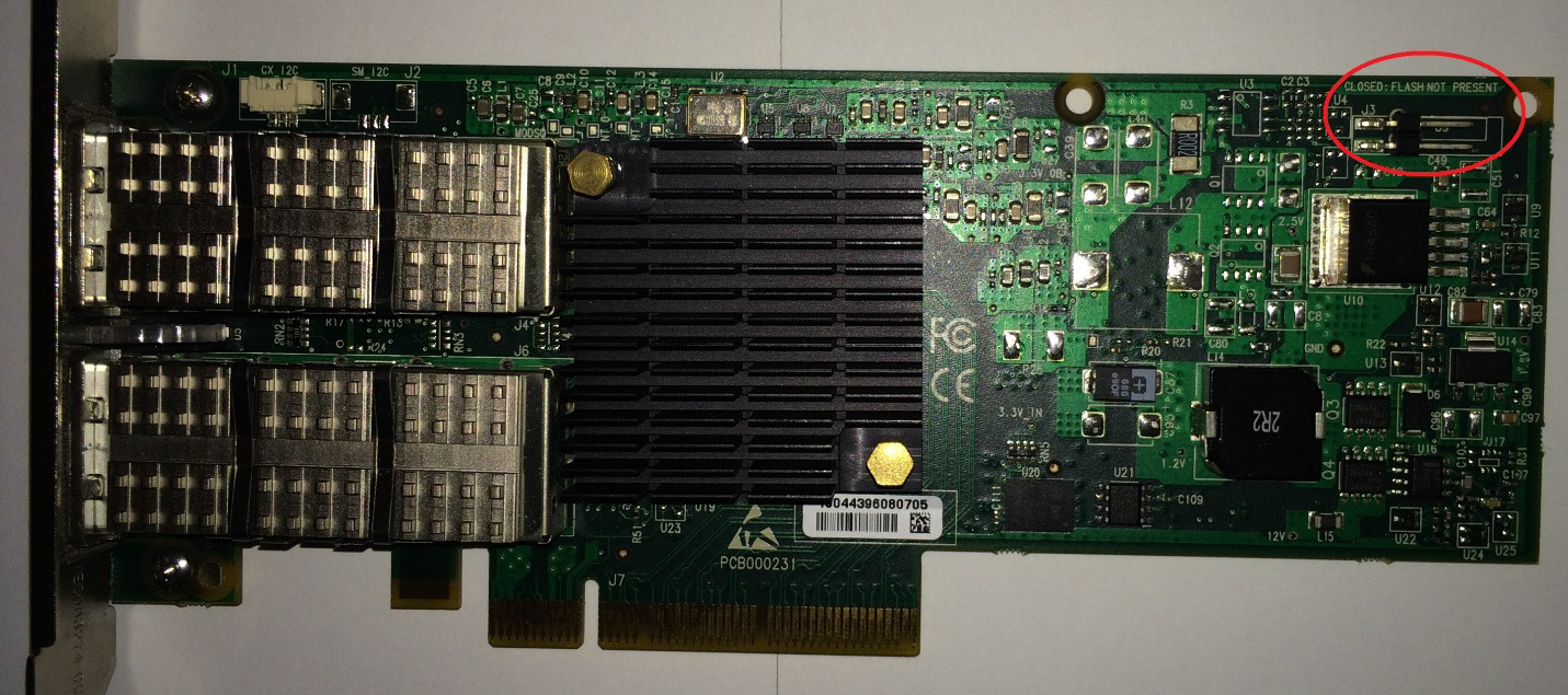 2. Take off the jumper connected to the Flash Present pins on the HCA.