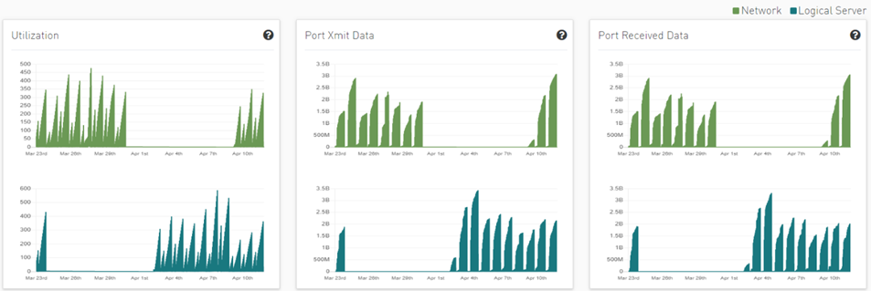 This way the user can see the impact of a specific logical server throughout the entire network and can see if logical server activity is normal both from a performance and from a duration of usage (i.e., if the activity is happening in a reasonable time) point of view.