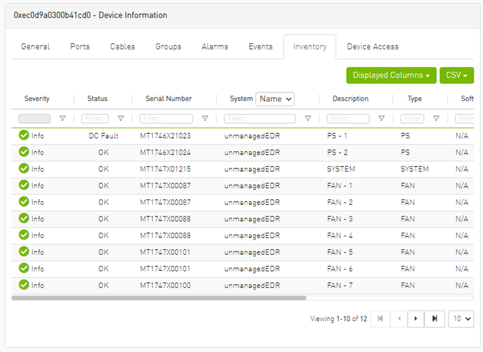 This tab provides a list of the device’s HCAs with information in a tabular format.
