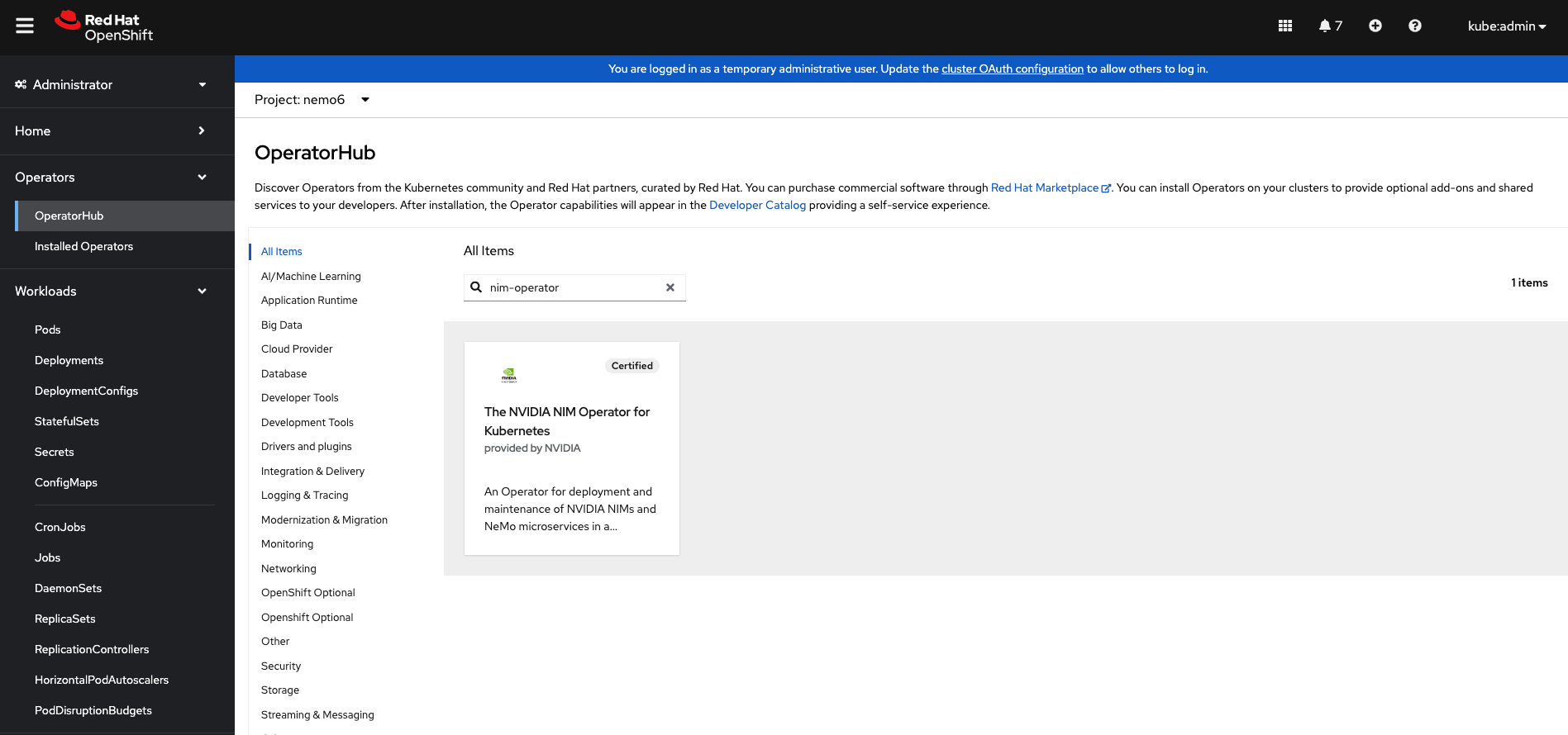 Installing NIM Operator on Red Hat OpenShift Using the Web Console#