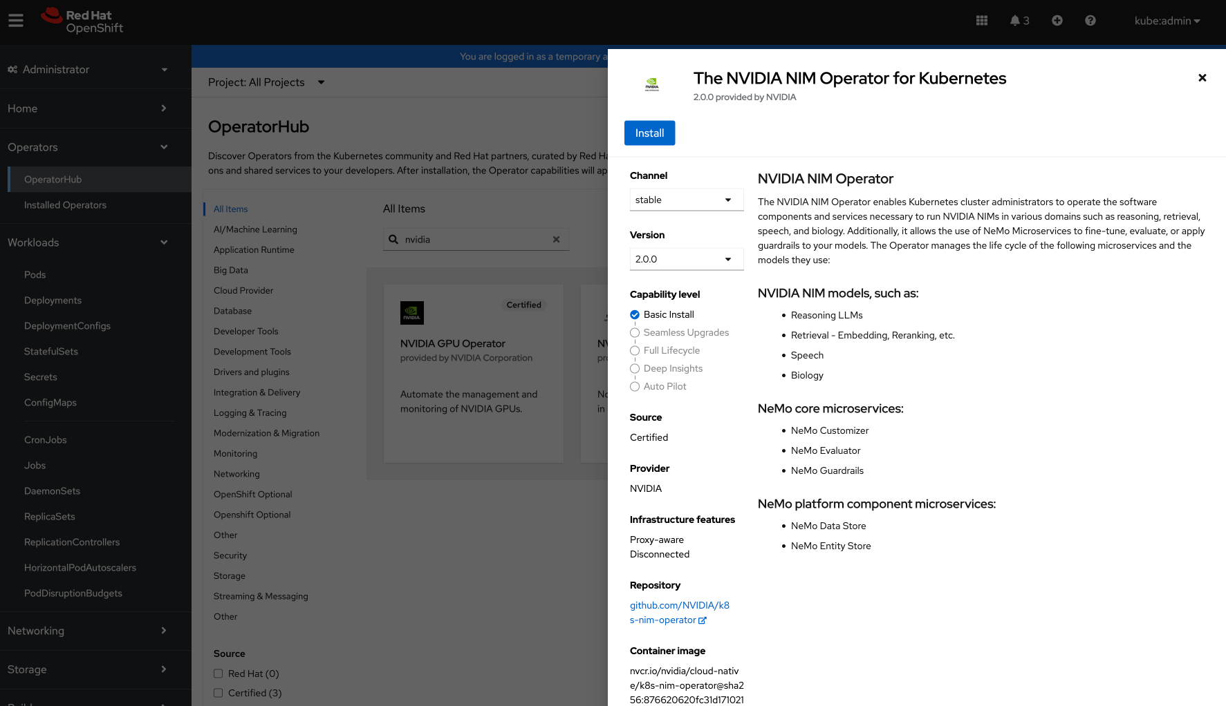 Installing NIM Operator on Red Hat OpenShift Using the Web Console#
