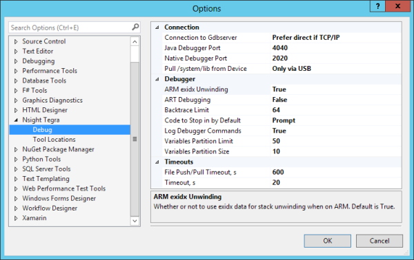 - ARM exidx Unwinding — Sets whether or not to use exidx data for stack unwinding when on ARM.