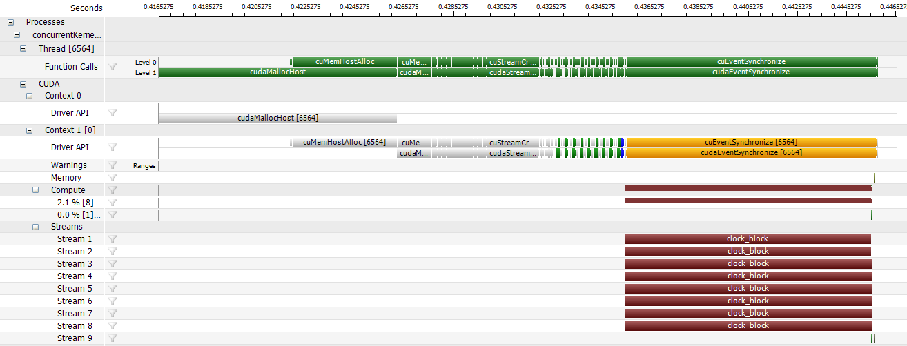 Note that CUDA concurrent kernel trace mode is only available for cards built on Fermi architecture. |