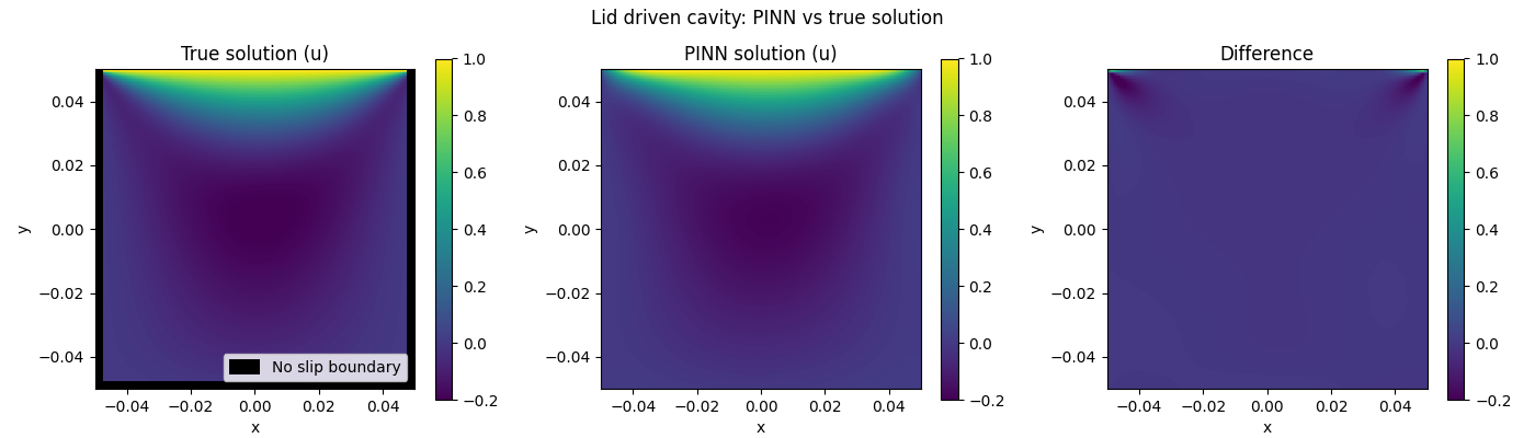 plt.suptitle("Lid driven cavity: PINN vs true solution")