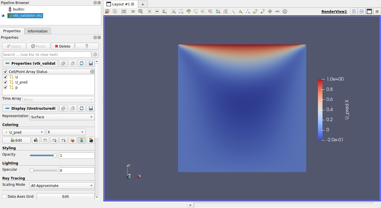 Fig. 91 Visualization of vtk_validator.vtu in ParaView from LDC validator#